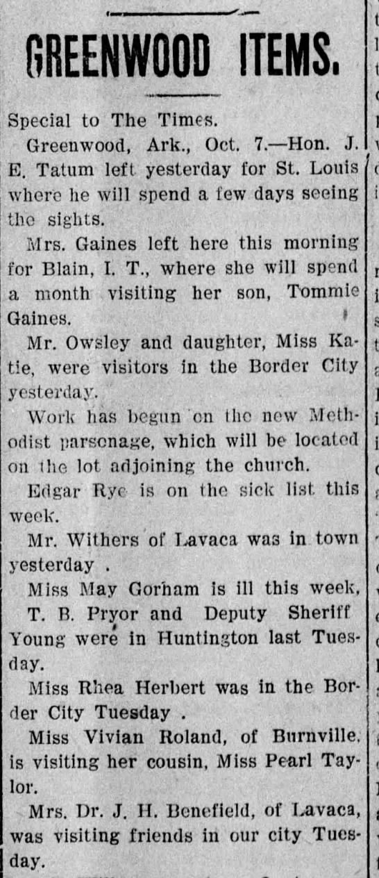 Tatum, Gaines, Owsley, Rye, Withers, Gorham, Pryor, Young, Herbert, Roland, Taylor, Benefield