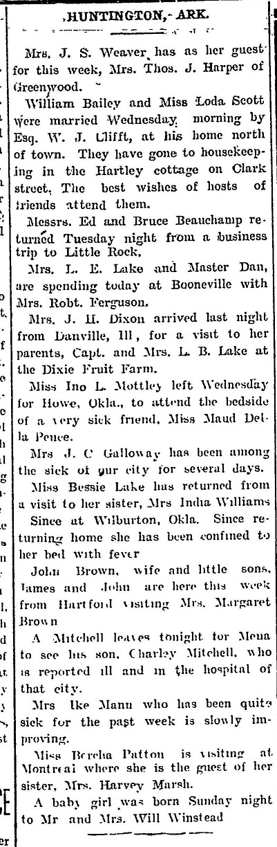 Weaver, Harper, Bailey, Scott, Clifft, Beauchamp, Lake, Ferguson, Dixon, Mottley, Pence, Galloway, Williams, Brown, Mitchell, Mann, Patton, Marsh, Winstead