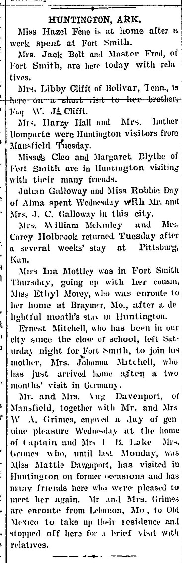 Fene, Belt, Clifft, Hall, Bomparte, Blythe, Galloway, Day, McKinley, Holbrook, Mottley, Morey, Mitchell, Davenport, Grimes, Lake,