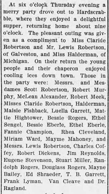 names mentioned: Robertson, Halderman, Murphy, Alexander, Meek, Fishback, Garrett, Hightower, Rogers,