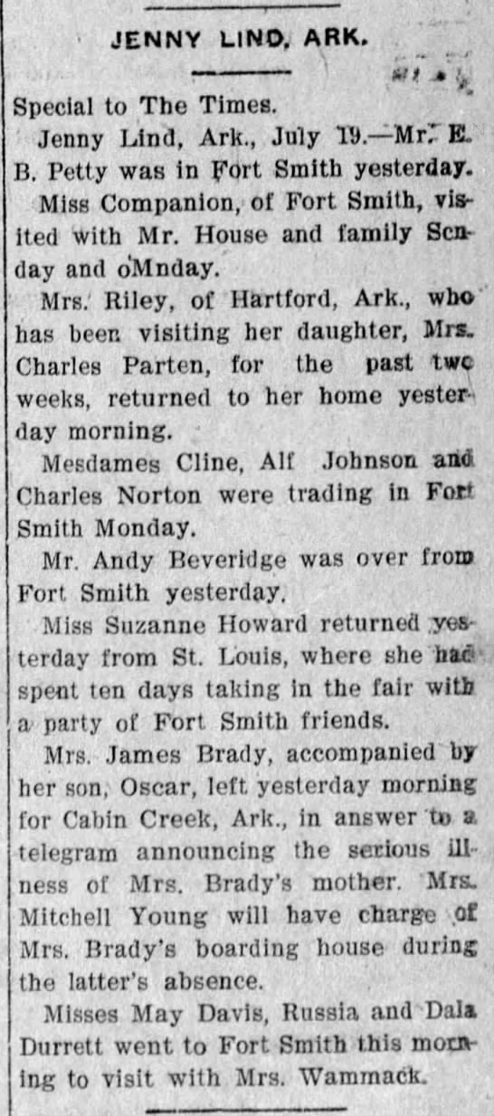Petty, Companion, House, Riley, Parten, Cline, Johnson, Norton, Beveridge, Howard, Brady, Young, Davis, Durrett, Wammack