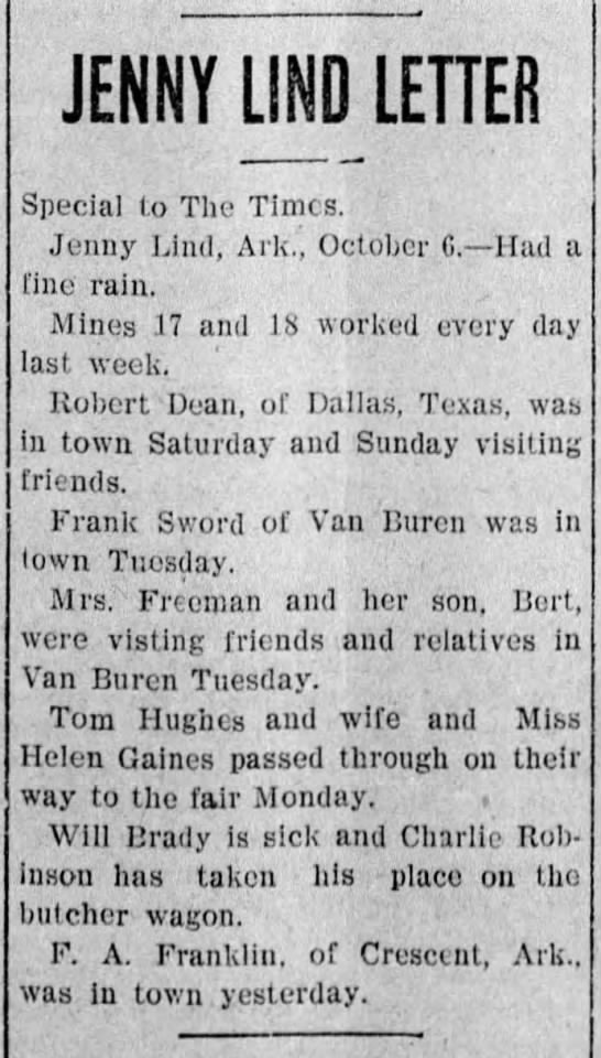 Dean, Sword, Freeman, Hughes, Gaines, Brady, Robinson, Franklin