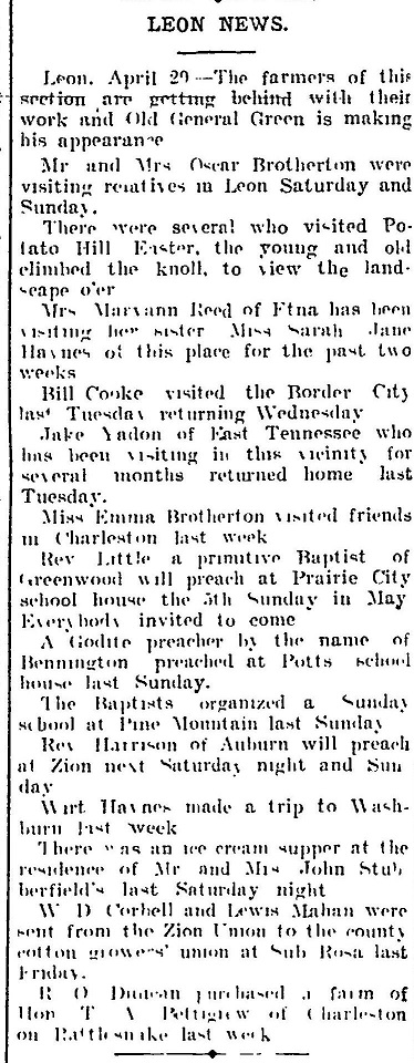 Brotherton, Reed, Haynes, Cooke, Yadon, Little, Bennington, Harrison, Haynes, Stubberfield, Mahan, Duncan, Pettigrew