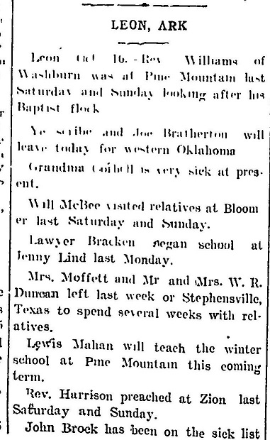 Williams, Bratherton, McBee, Bracken, Mofett, Duncan, Mahan, Harrison, Brock, Bonner, Brotherton, Haynes, Spurlock