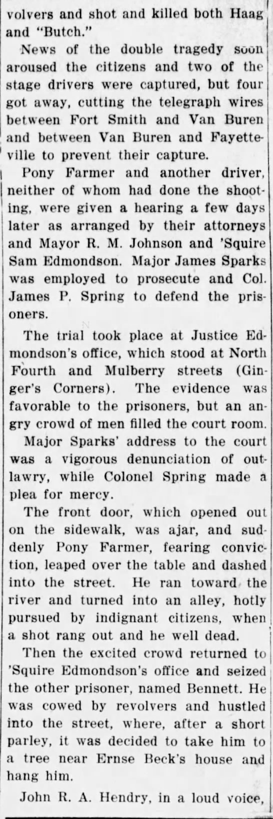 Hendry, Haag, Wolf, Pollock, "Butch", Farmer, Johnson, Farmer, Edmondson, Sparks, Spring, Bennett, Beck,