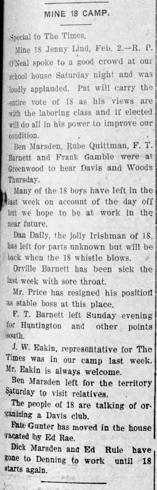 Mine Camp 18 News