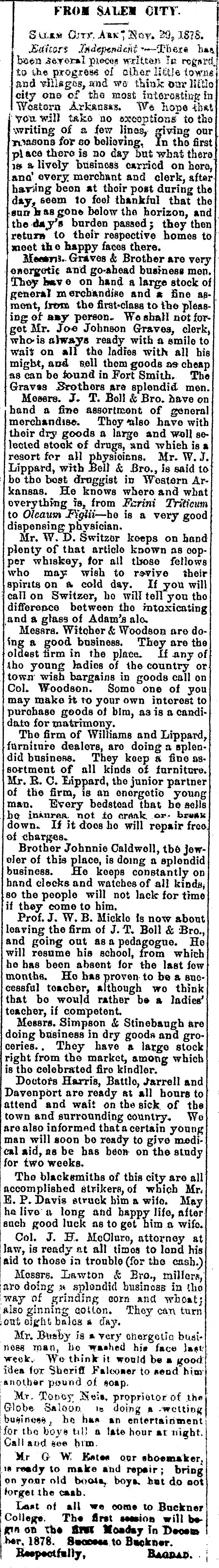 names mentioned: Graves, Bell, Lippard, Switzer, Witcher, Woodson, Williams,