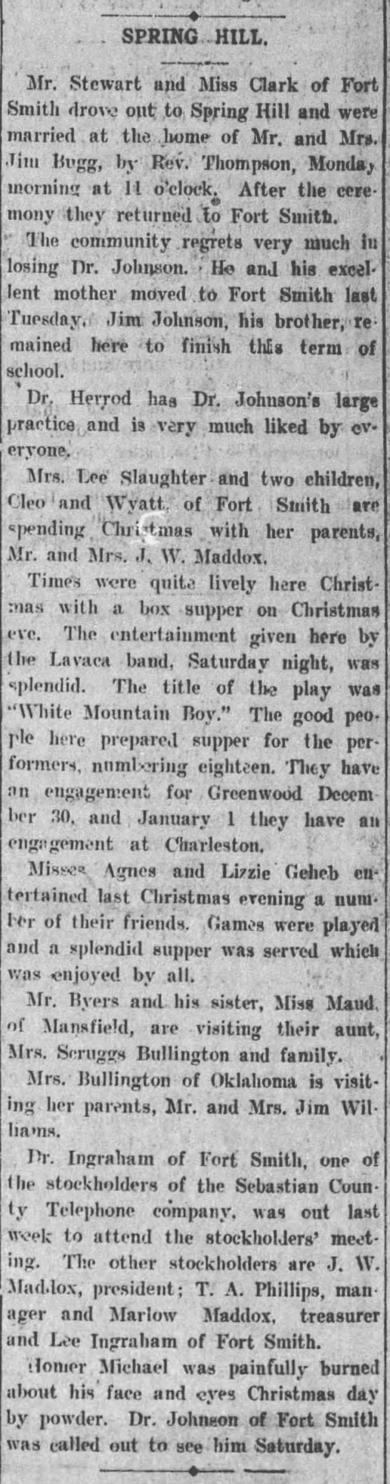 Stewart, Clark, Bugg, Thompson, Johnson, Herrod, Slaughter, Maddox, Geheb, Byers, Bullington, Williams, Ingraham, Phillips, Michael