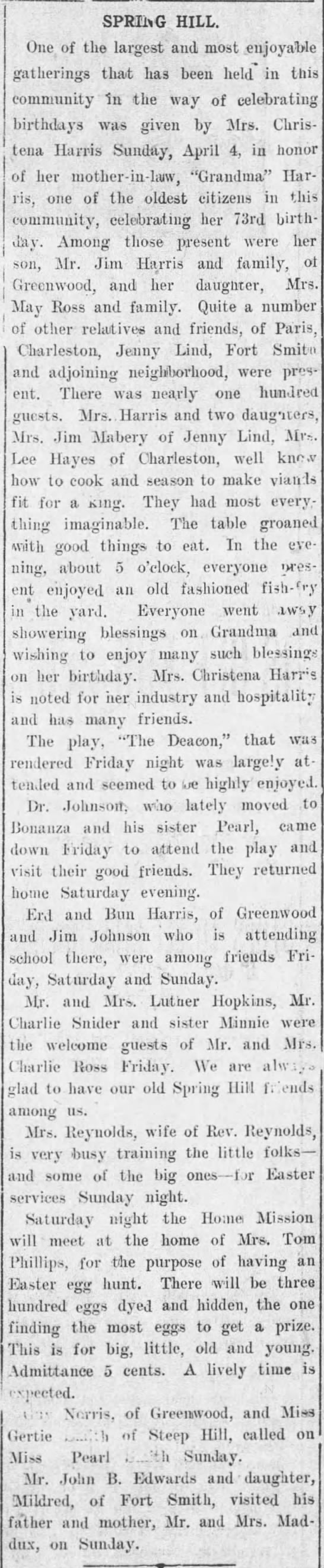 Harris, Ross, Mabery, Hayes, Johnson, Hopkins, Snider, Reynolds, Norris, Smith, Edwards, Maddux