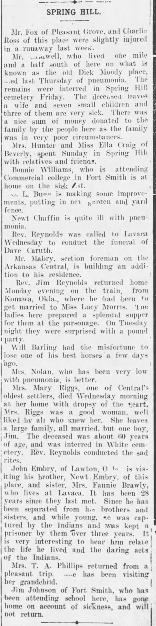 Fox, Ross, ???well, Craig, Hunter, Williams, Bugg, Chaffin, Reynolds, Caruth, Mabry, Reynolds, Morris, Barling, Nolan, Riggs, Lawton, Embry, Brawly, Phillips, Johnson,