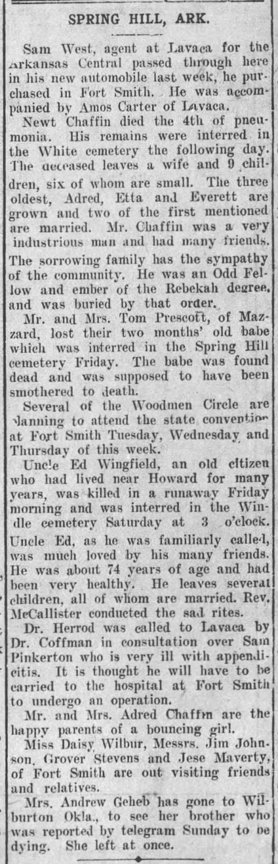 West, Carter, Chaffin, Prescott, Wingfield, McCallister, Herrod, Coffman, Pinkerton, Wilbur, Johnson, Stevens, Maverty, Geheb
