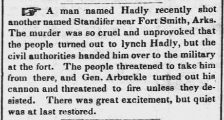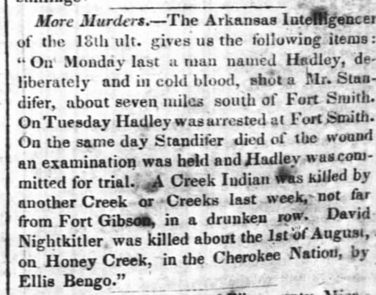 killed Seaburn Standifer, a citizen of the county, living about seven miles south of Fort Smith.