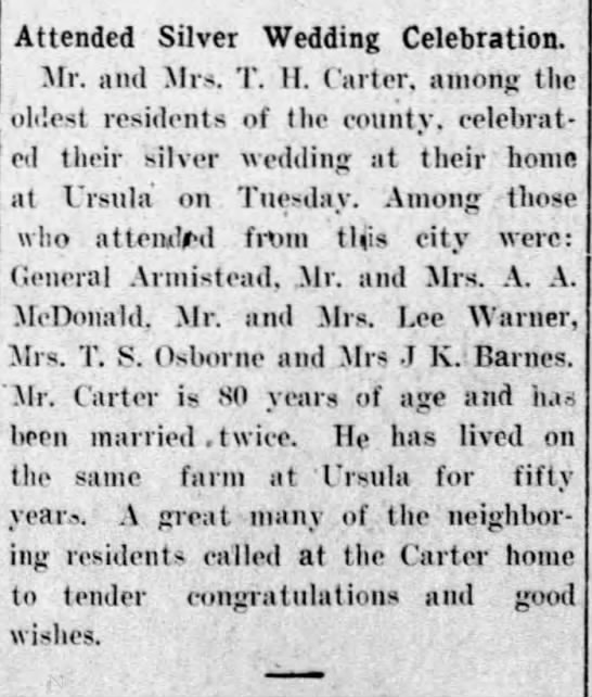 Carter's Silver Wedding Celebration