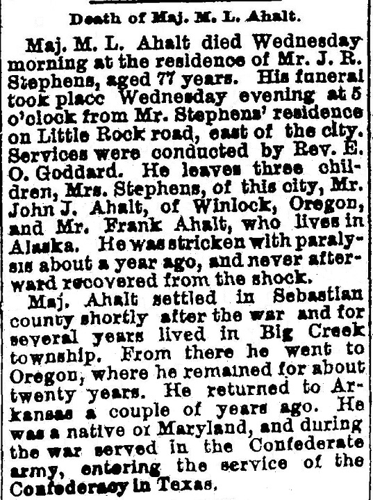 Maj. M. L. Ahalt