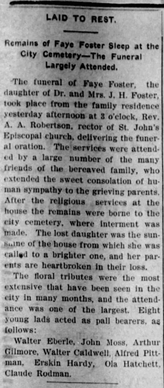 Pall Bearers: Eberle, Moss, Gilmore, Caldwell, Pittman, Hardy, Hatchett, Rodman