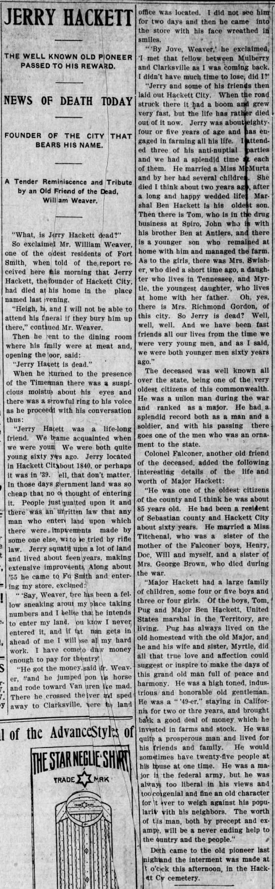 Founder of Hackett City, Ar