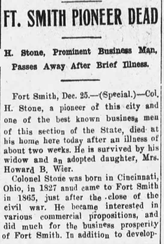 After the war he again returned to Cincinnati, and in 1865, on April 1, landed at Fort Smith, where he has since been engaged in