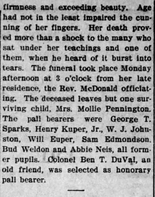 other names mentioned: Bonneville, Johnston Sparks, Weldon, Sengel, Edmondson, Kuper, Neis, Euper, Ake, Raines, Pennington, DuVal