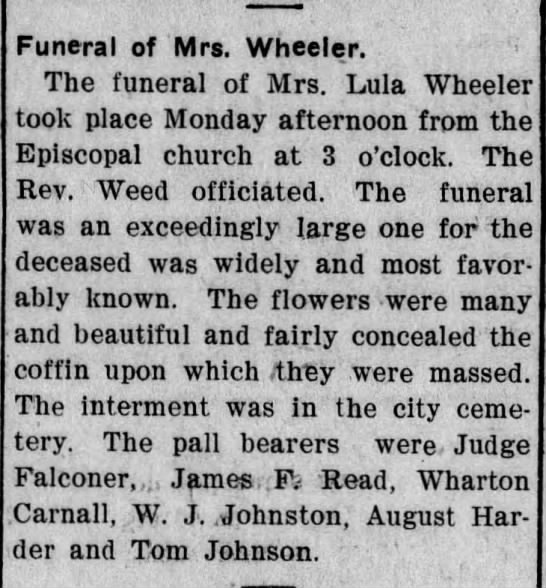 Mrs. Lula G. Wheeler