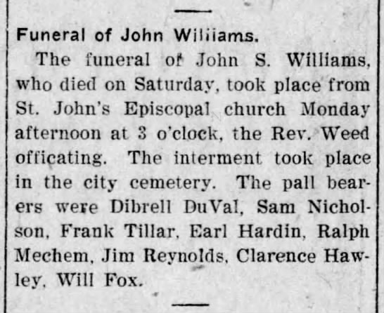 other names mentioned: DuVal, Nicholson, Tillar, Hardin, Mechem, Reynolds, Hawley, Fox
