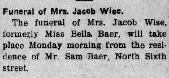 Mrs. Jacob (Bella Baer) Wise
