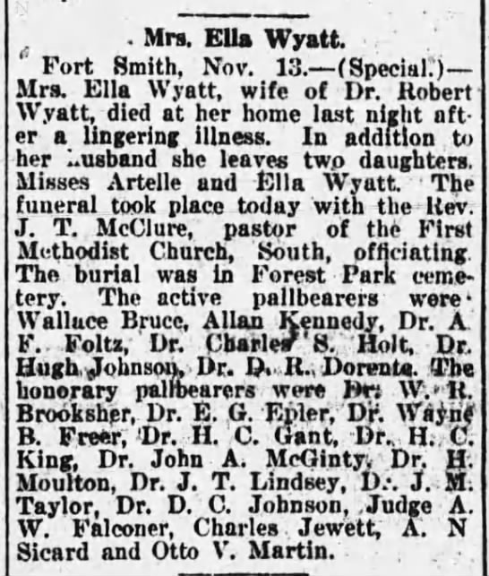 names mentioned: Bruce, Kennedy, Foltz, Holt, Johnson, Dorente, Brooksher, Epler, Freer, Gant, King, McGinty, Moulton, Lindsey, Taylor, Falconer, Jewett, Sicard, Martin
