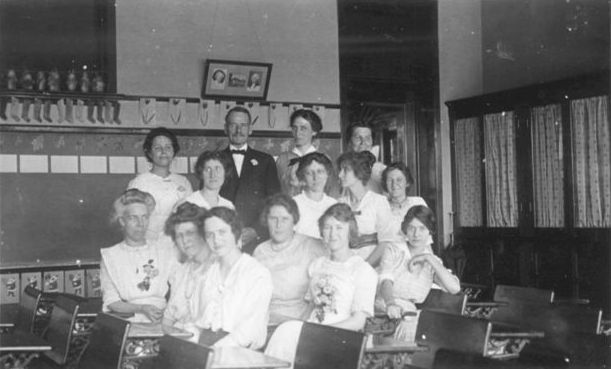 Miss Williams was a strict disciplinarian. Anyone recognize the Principal and any of the Teachers?