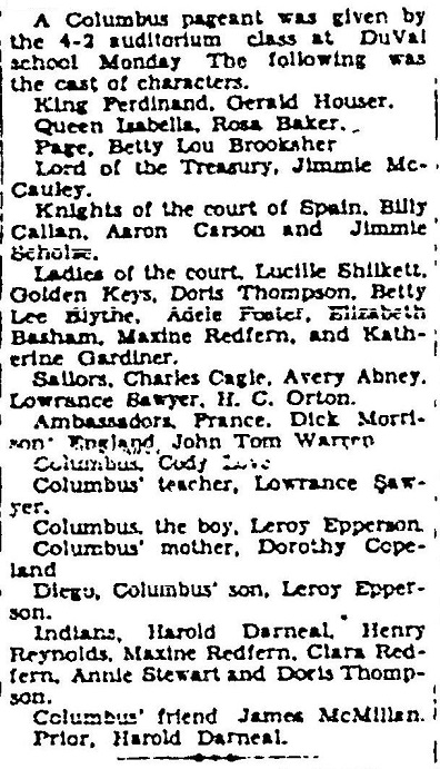 DuVal Columbus Pageant 1930