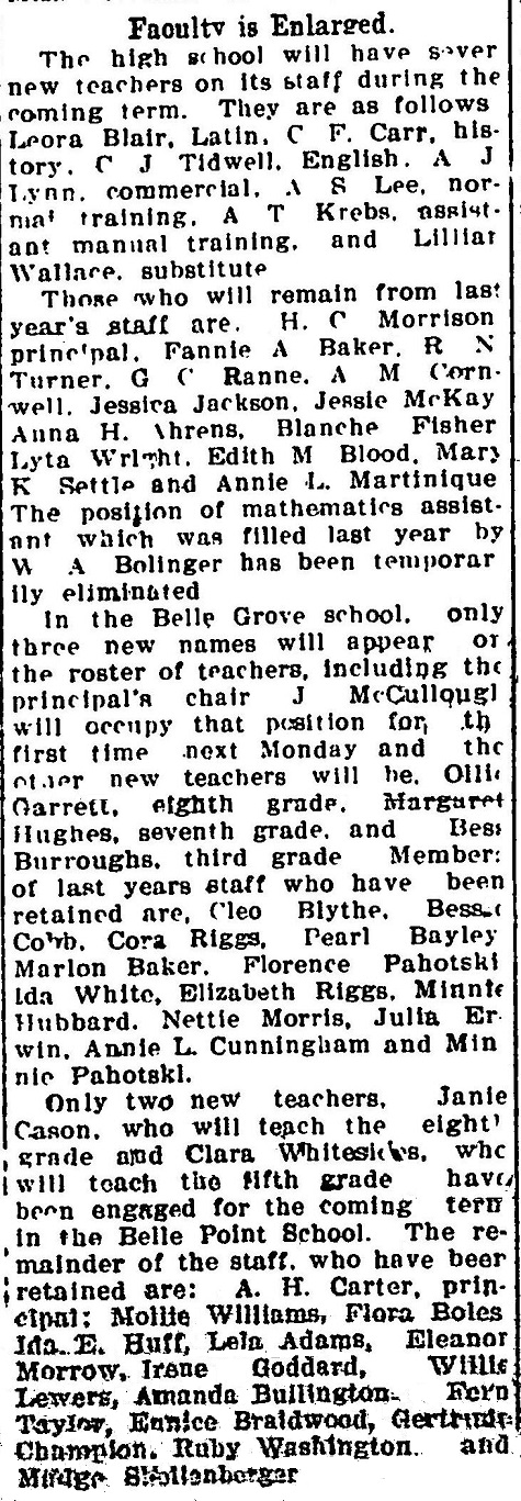 names mentioned: Blair...Carr...Tidwell...Lynn...Lee...Krebs...Wallace...Morrison...Baker...Ranne...Cornwell...Jackson...McKay...Ahrens...