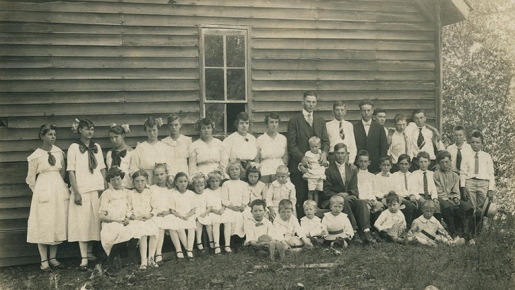 caption says, Old Pleasant Ridge School, Horace Holland, teacher