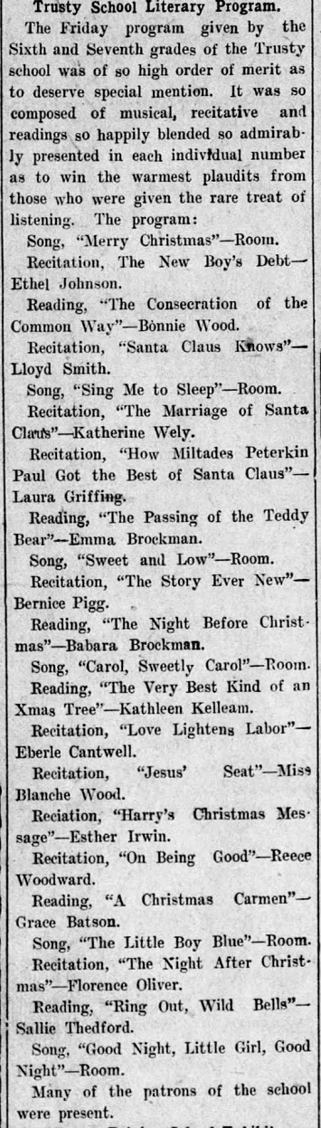 The Trusty school was originally known as the Nolan Springs school, which was located about a mile