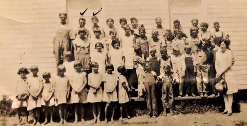 Photo made in 1929. Earl Glass and Madge Rogers Glass standing side by side on the top row.