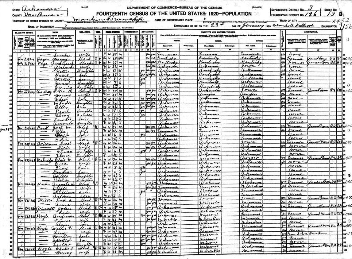of the Federal Census of Van Buren County Ar. with my Grandpa Augusta Otto Harris, his wife Effie M Harris and son's William and Arthur.