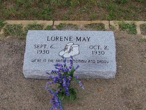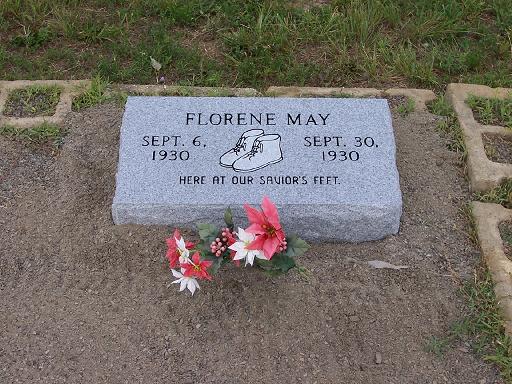 | May, Florene | 6 Sep 1930- 30 Sep 1930 | "Here at our Savior's feet." (Twins) | ![]() | Jo Kilburn |