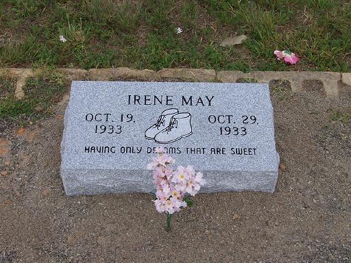 | May, Gladys E. | 10 Nov 1913- 19 Aug 1977 | s/w Dallas W. | ![]() | Jo Kilburn |