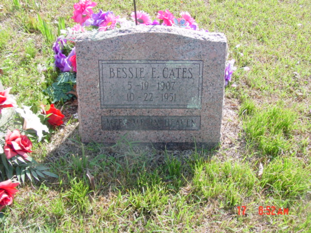CATES, J.E. 3/11/1845-10/24/1921 d/o Wm W. & Ruth Brooks Tarkington, w/o Wm A. Cates
