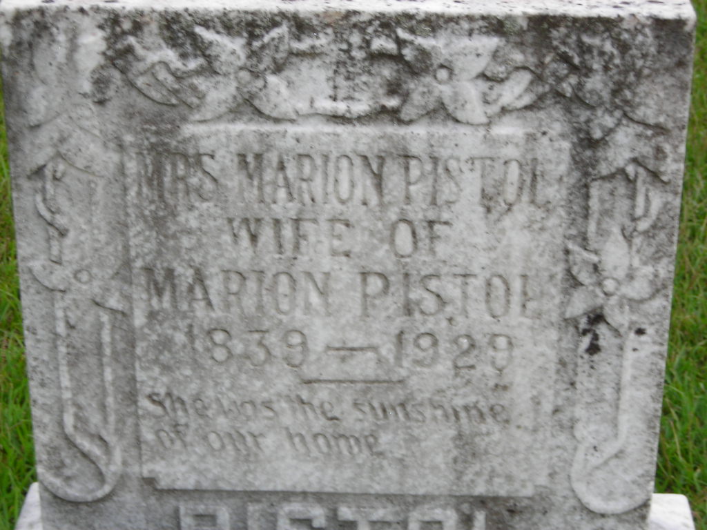 - Mother of Sam W. Pistole & Ida Caldwell, w/o Humble Newman & Marion Pistole.