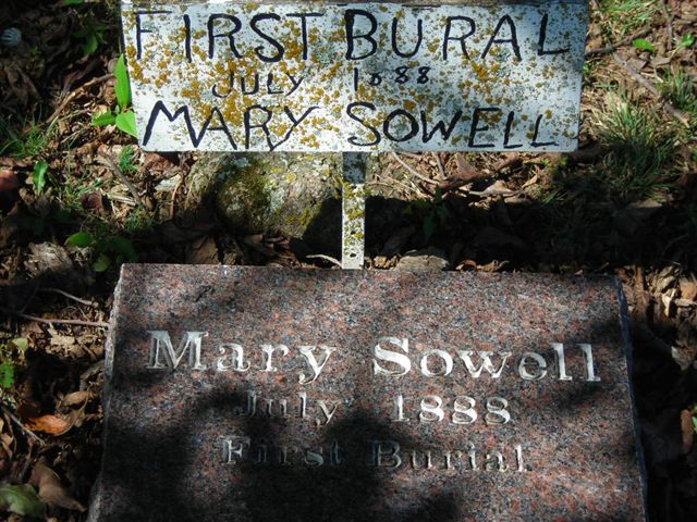 Sowell, Mary 7/1888 first to be buried here