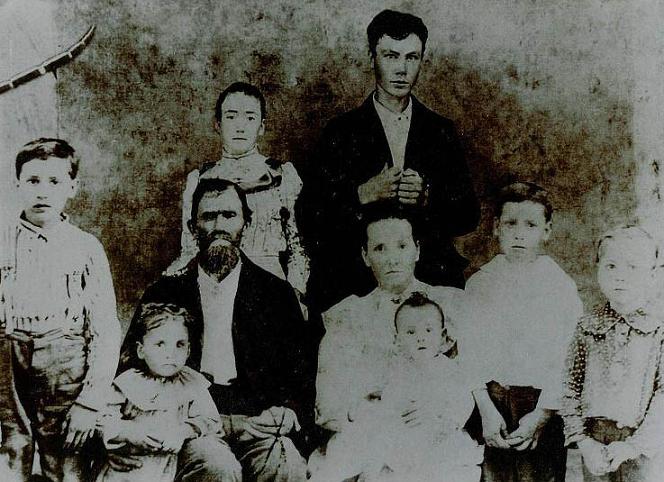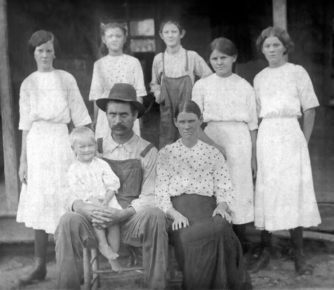 | Tom & Nina Gardner and Children taken on Halfmoon Mountain, Van Buren County, Arkansas - Back row Earnest, Tom, Nina and Steve Gardner and the front row are Bessie, Jessie and Charlie Gardner. ---Submitted by Murlene Gardner Horlacher | |