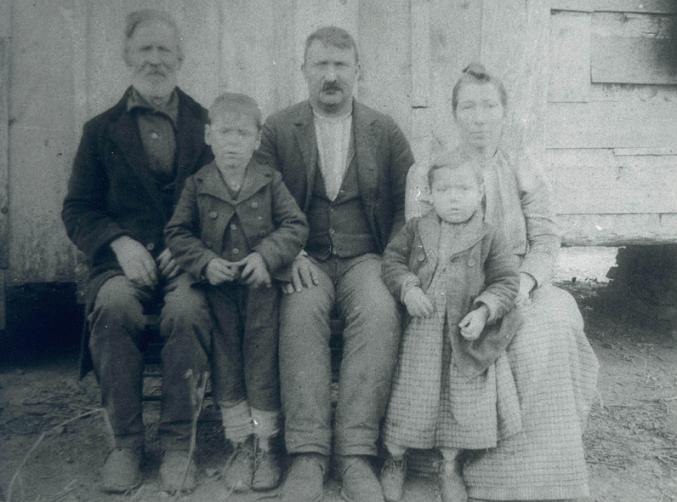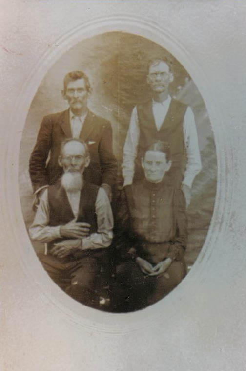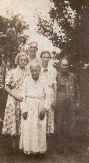 | Jacob Eades with Bud Thompson & wife Cynthia Elizabeth (Eades) Thompson, James & Willie Drake (See Jacob Eades family in Family Histories) --Submitted by Donnie Pickard | |