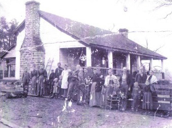 | L to R First 3 people unknown. Next 3 young children and a couple are Nancy Jane Gadberry Pierce family. Next family with 2 blond babies are William and Maggie Gadberry family. Woman standing in gate with baby is unknown. Next couple with unknown baby is William Henry and Rachel Bradford Gadberry. Last couple is David Gadberry with unknown woman and unknown children. People on the porch are also unknown. --Submitted by Donna Penner Gadberry | |