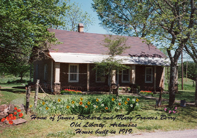 | James Richard & Mary Frances Berry home in Low Gap, Arkansas. This house was built in 1919. --Submitted by Beverly Berry | |