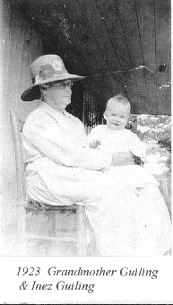 | My Grandmother Ella Jane (Lowe) Guiling holding my Sister Inez (Farish) Guiling. Inez is the oldest of Golden M. and Zora Faye (McCoy) Guiling's seven children. --Submitted by Norman Guiling | |