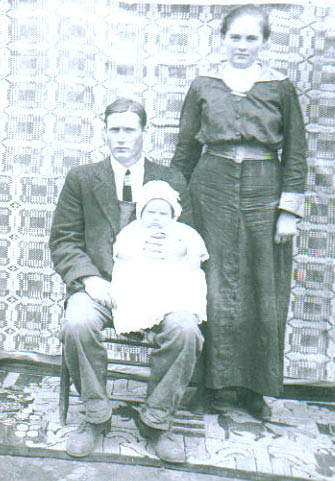 | This is my grandparents, James and Plumer Leonard with their first born, Howard taken in 1918. James Alfred Leonard, born Sept. 23, 1892, was the son of Charles Franklin Leonard, an original Van Buren County land grantee. His mother was Addie Sims, born and raised in Van Buren County. Plumer Louisa Sneed (also descended from original land grantees), born Nov. 27, 1900, was the daughter of James H. Sneed and Victoria Louanna Linn. Plumer was so young when she married Jim on Sept. 06, 1916, that her father had to sign his permission on the marriage certificate. Howard came along on May 19, 1917. Unfortunately Howard died a few months after his first birthday. Plumer and Jim made their home in the what is now the Black Hill Road area. They farmed and had six more children. Jim, age 52, died on Oct. 14, 1944 after being paralyzed several months from a farming accident. Plumer lived to be 80 years old, dying on Jan. 13, 1980. One child survives, Cynthia Lena Leonard Bollier of Guy, Arkansas. Grandchildren and great-grandchildren with the Leonard surname still live in Van Buren County. -- Submitted by Leigh Leonard Smith | |