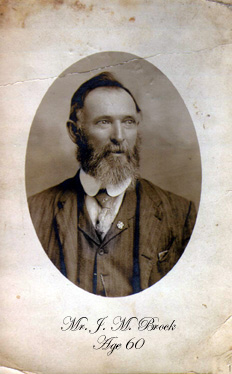 | J.M. Brock - Age 60 - J. M. Brock is the second husband of Mollie Kendrick. He is Jonis Wesley Kendrick's son-in-law. Picture was in James Holland Egger, Jr's trunk in Old Liberty, Arkansas, in Van Buren County.--Submitted by Beverly Berry |