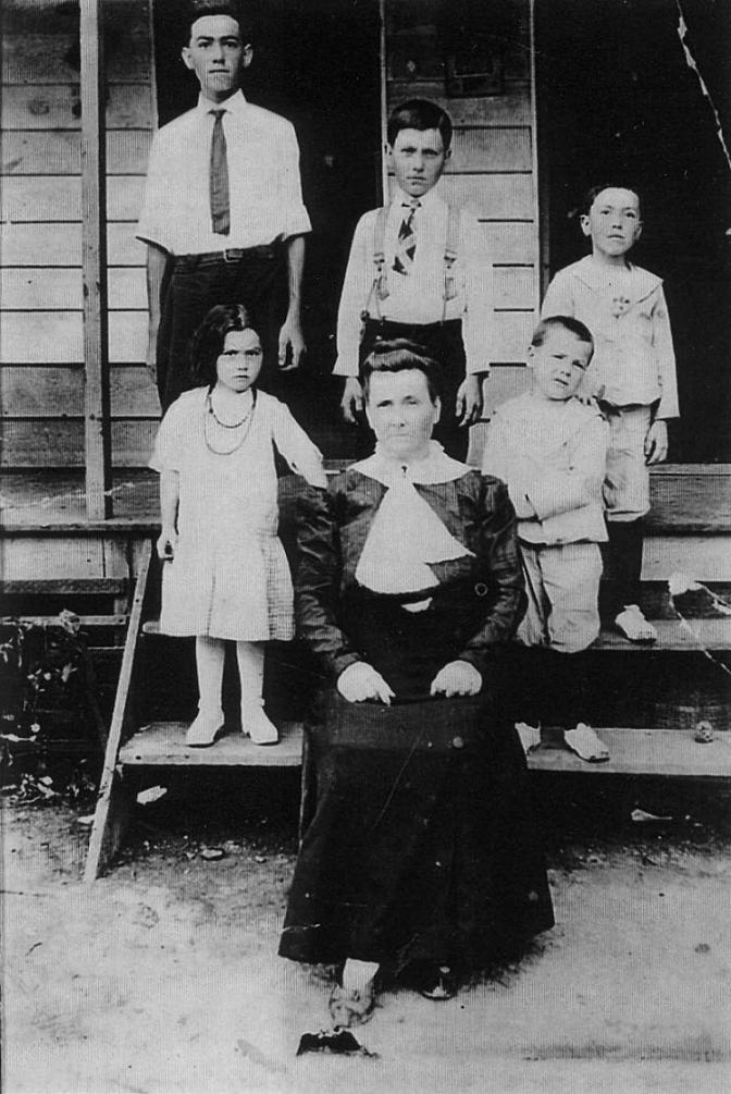 | Nelson Family 1912 at Bee Branch. Top row, left to right:Joe Nelson, Roy Nelson, Romie Elmo. Front: Louise Nelson,Grandma Nelson, Bob Nelson. --Submitted by Ray Nelson | |