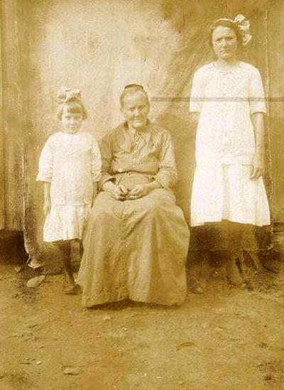 | Margaret Ellen Harness, born 10/1854 AR, died 1926 VBC, married John Brown and her granddaughters Edna Duke and Adele Shelton. Adele was the daughter of Mary Elizabeth Shelton and John Shelton. She died with typhoid fever when she was 17, buried Bradford Cemetery. Edna is the daughter of Nancy C Brown and Oscar Dukes------------Submitted by JoAnn Bradford | |