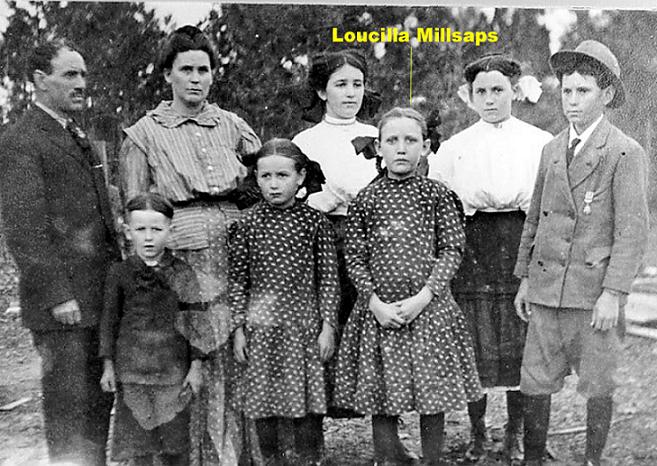 | Reuben Wesley Millsaps, born March 5, 1871 in Archey Valley, Van Buren Co., AR. died January 01,1965 in Modesto, CA; his wife, Louisa Lizzebeth Tucker born March 5, 1878 in Searcy Co., AR. and children: William Thomas Millsaps, Isabel Millsaps, Myrtle Lilly Millsaps, Loucilla Millsaps, Vada Ellen Millsaps, Virgil Jesse Millsaps and Eugene Noah Millsaps --Submitted by Gammill | |