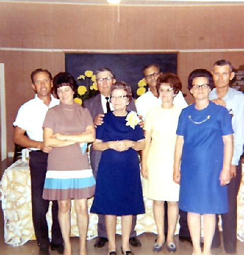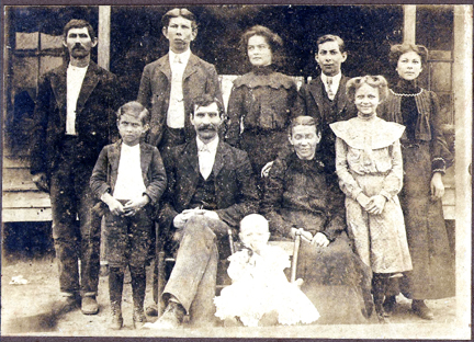 | Seated: Samuel Henley, Leverit, Virginia Bailey Henley Standing: Cora, Georgia, Joe (my gr-grandfather), Bill, Jim, Oscar and Nettie. ---Submitted by Cathy Duvall | |