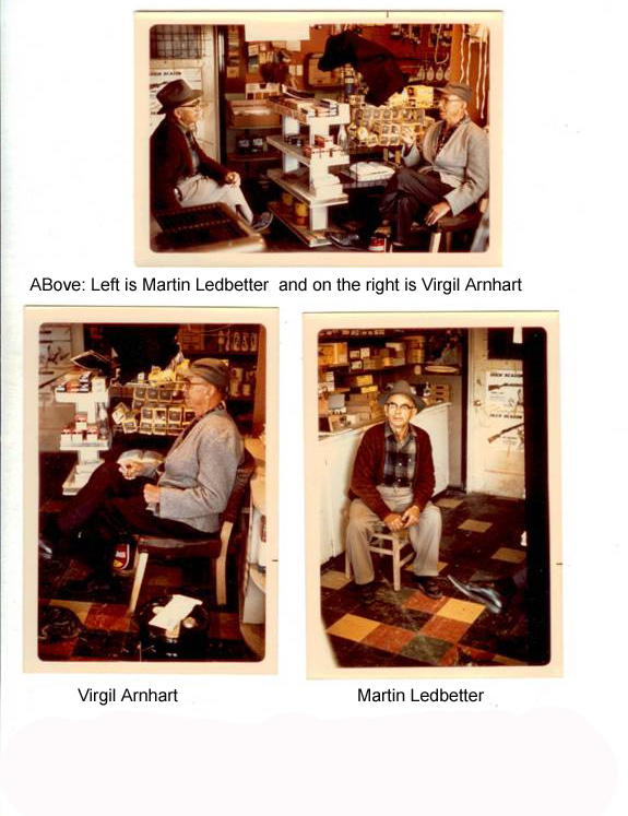 | 206, Three photos: Virgil Scott Arnhart and Martin Ledbetter Virgil Scott Arnhart and Martin Ledbetter renew their acquaintances from when they were neighbors in Copeland Community, Van Buren County. Photo was taken at Martin and his son, Lilburn's, carpentry shop in Kimberly , Idaho circa 1975. Submitted by Margaret Arnhart from Ketchum , Idaho | |